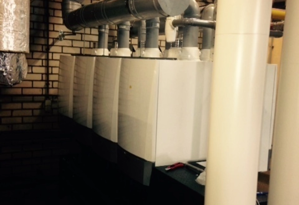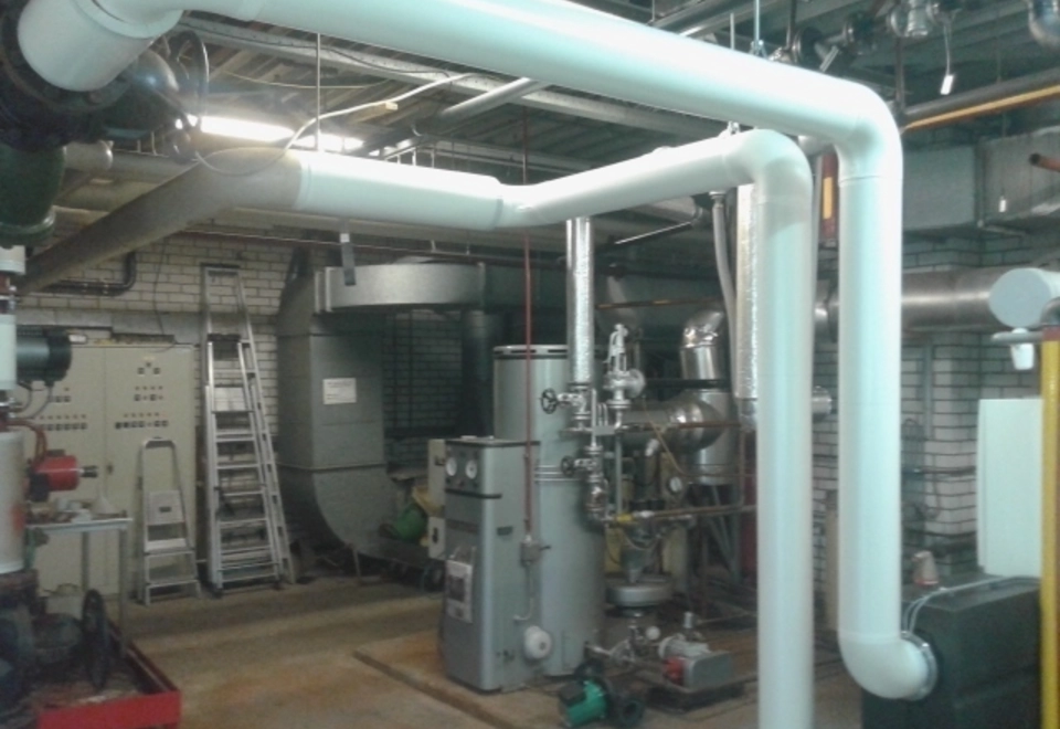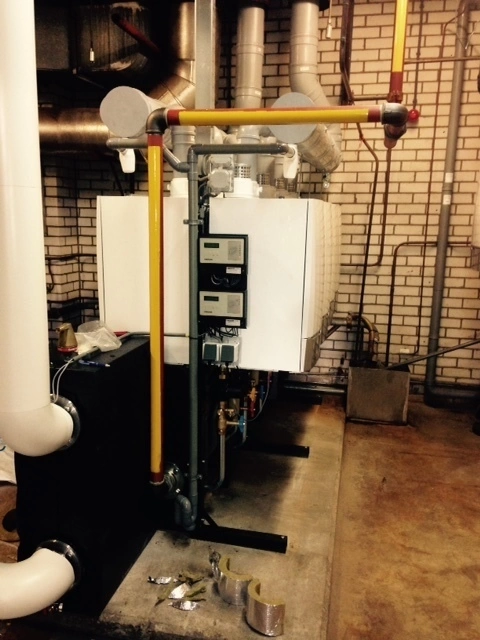 De bestaande cv-leidingen zijn aangepast naar de nieuwe cascade opstelling en de voorzien van nieuwe isolatieschalen. Het nieuwe lucht-rookgasafvoer systeem is gecombineerd en uitgevoerd met het zg. CVL-systeem. De gasleiding is aangepast en gekeurd volgens SCIOS scope 7a en afgemeld in de database.